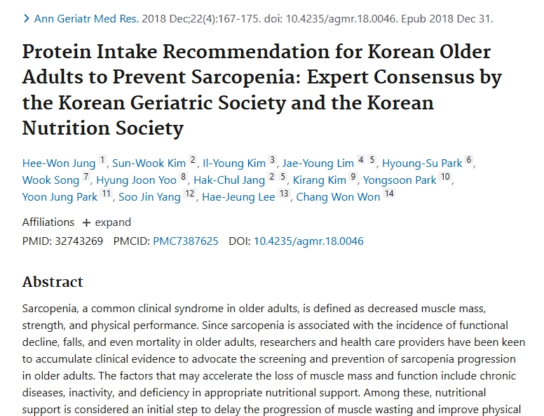 한국노인의학회 및 한국영양학회 전문가 합의문 수록에서는 중장년층에게 체중 1kg당 하루에 1~1.2g의 단백질 섭취를 권장합니다.